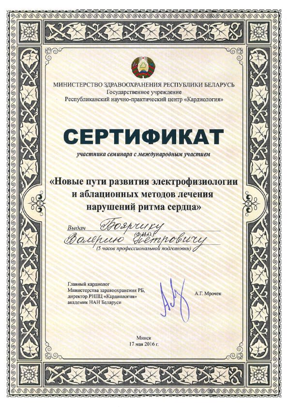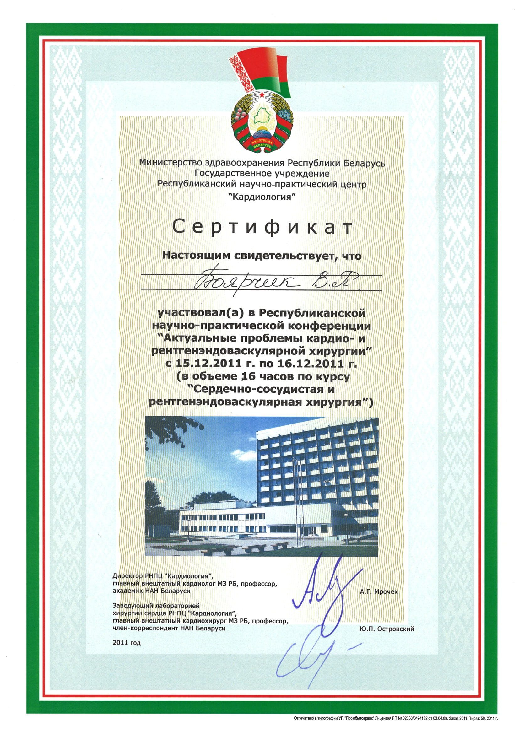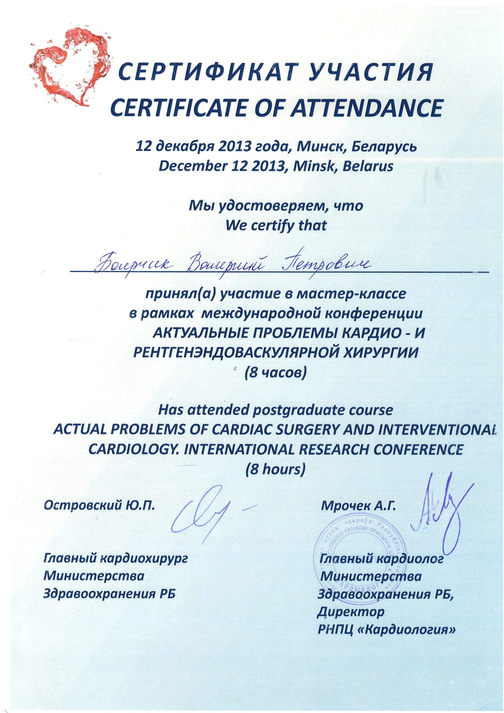 - 2013 – «Рентгенэндоваскулярная хирургия с аритмологией», БелМАПО