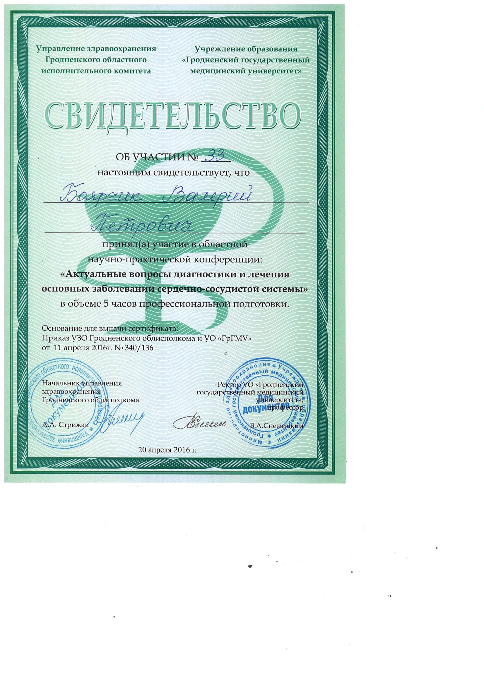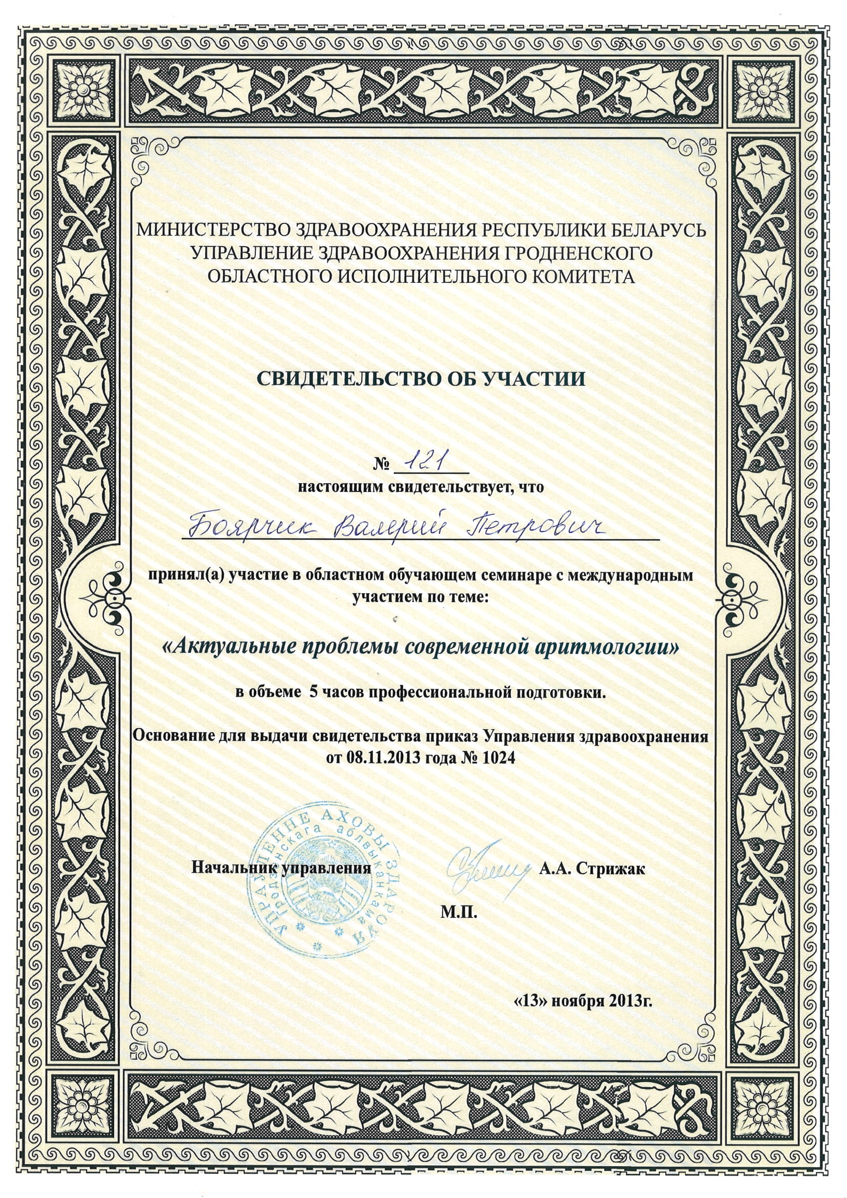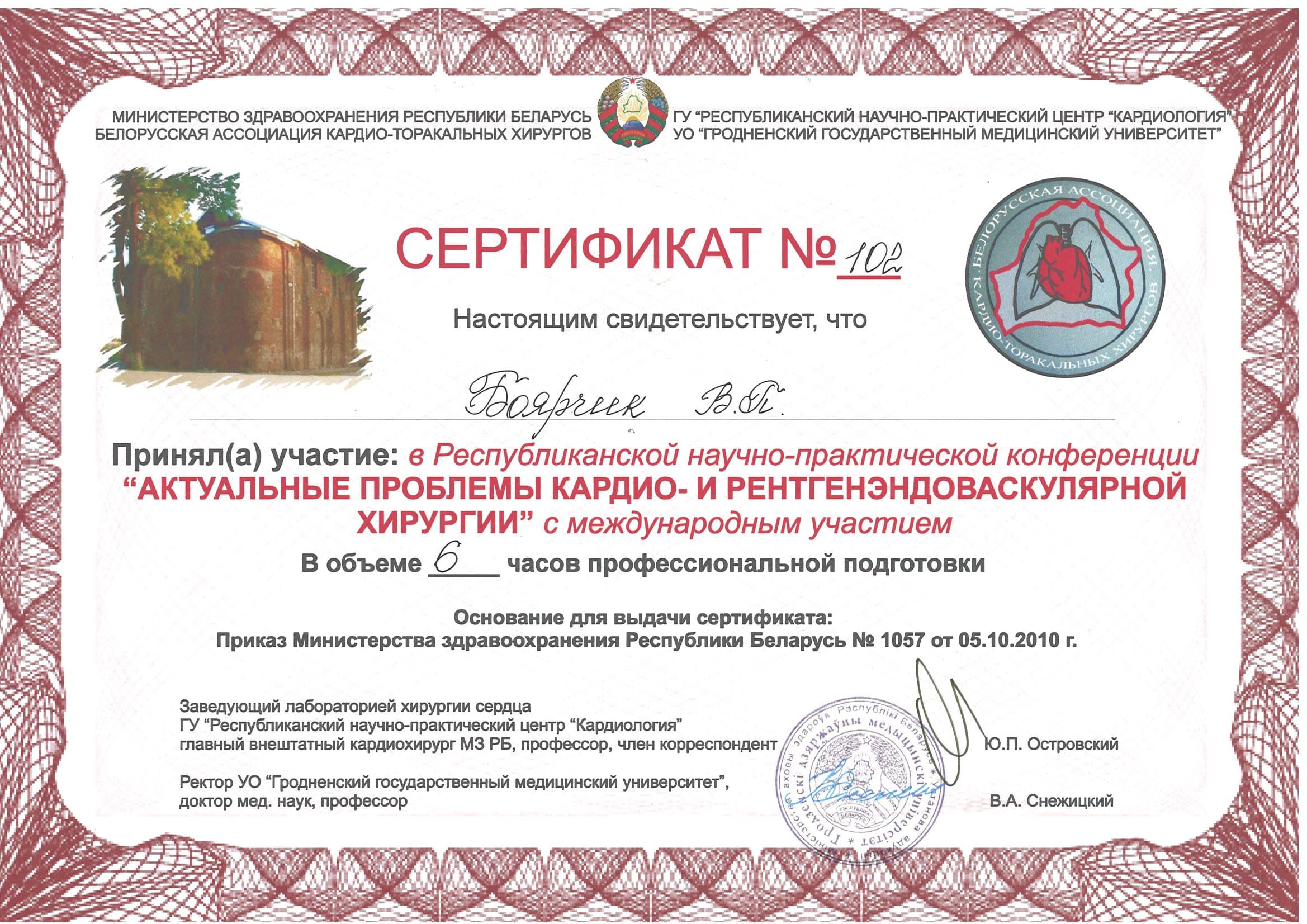 - 2013 – «Рентгенэндоваскулярная хирургия с аритмологией», БелМАПО
