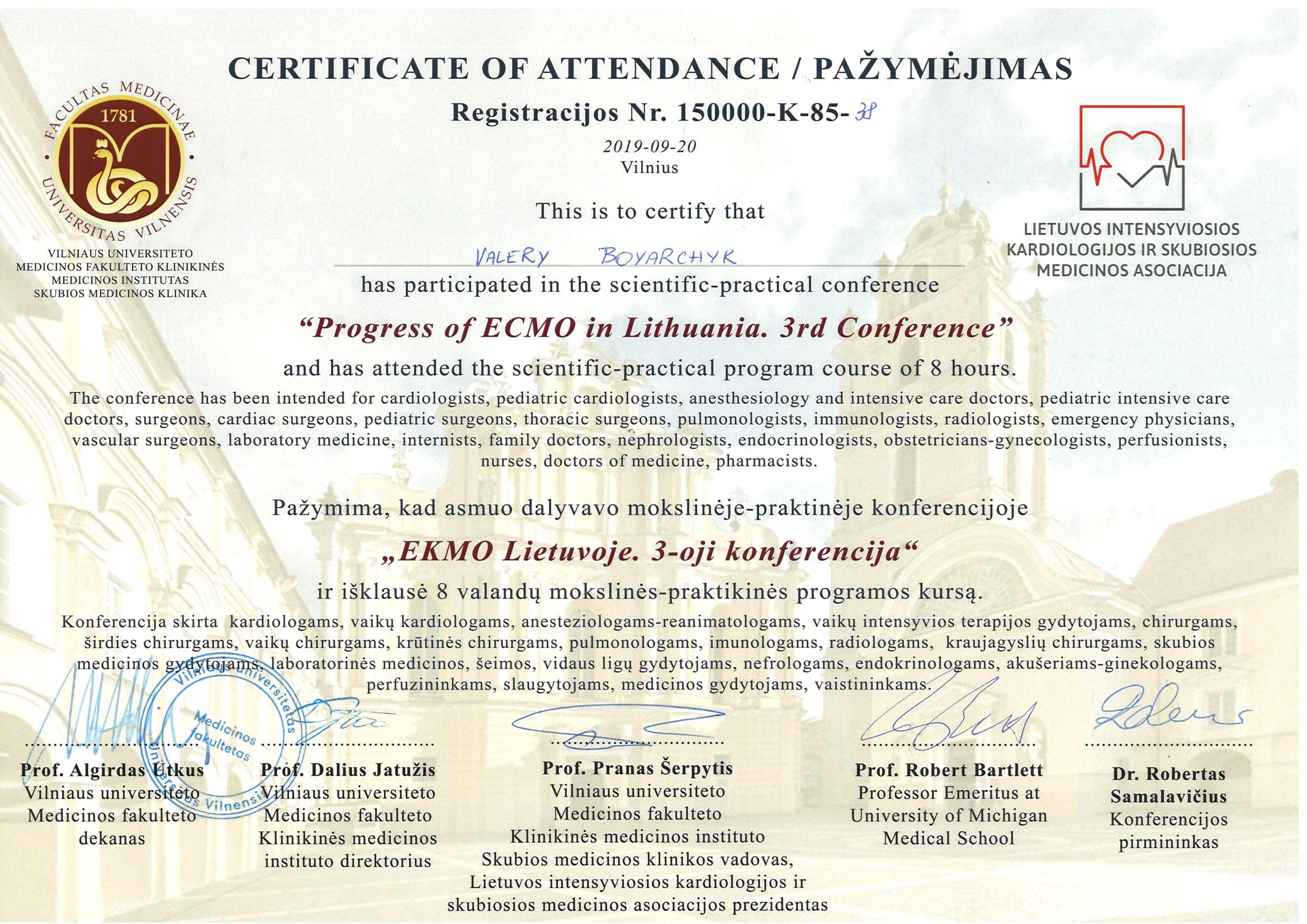 - 2008г. – Клиническая ординатура ГУО «Белорусская медицинская академия последипломного образования» по специальности кардиохирургия
